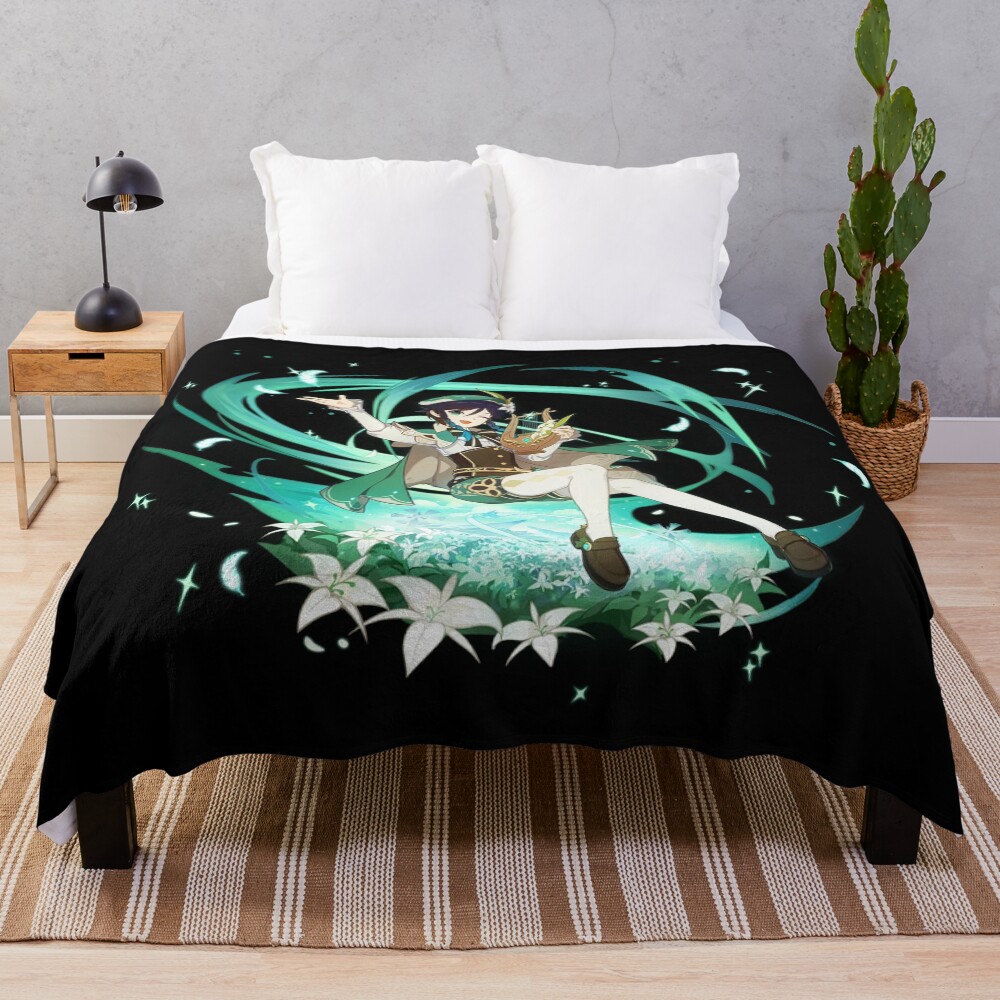 Genshin Impact Venti Official Character Wish Gacha Splash Art Throw Blanket